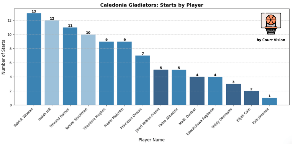 The numbers illustrate Caledonia’s instability. Through 19 games this season, they have fielded 15 unique starting lineups—the highest rate in the league. This contrasts sharply with teams like the Leicester Riders, who have only used 2 lineups in 17 games.