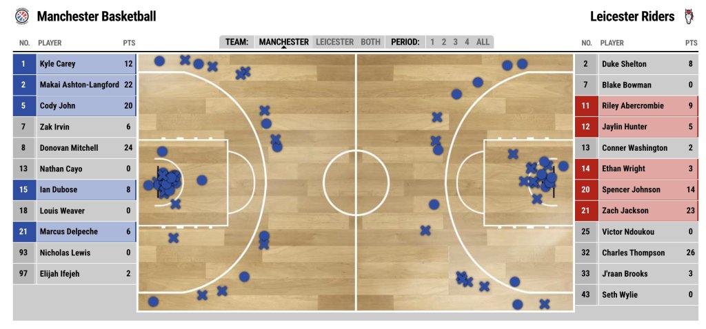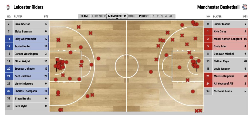 These two shot charts—both against Leicester—tell the story. In November, Manchester’s offence was scattershot. Now, it’s structured—better spacing, cleaner looks, and an emphasis on efficient zones.