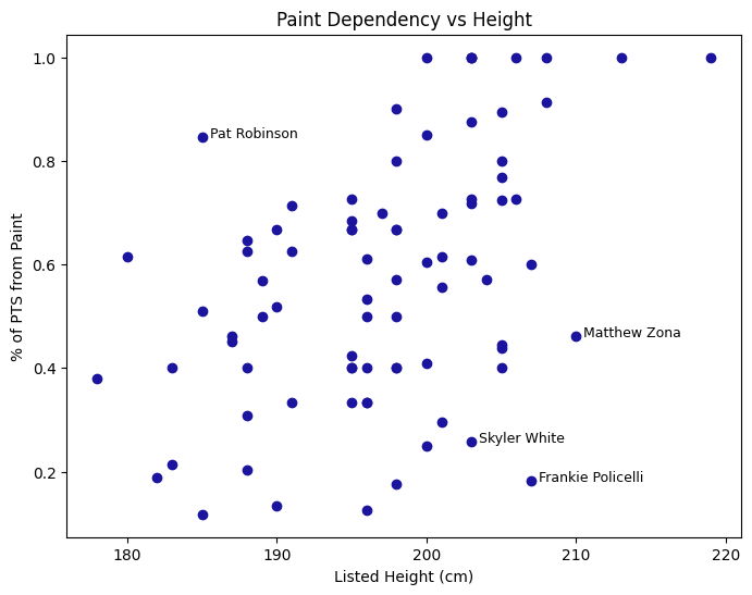 *Only players with a listed height on the SLB website who have scored more than 10 points this season are included.